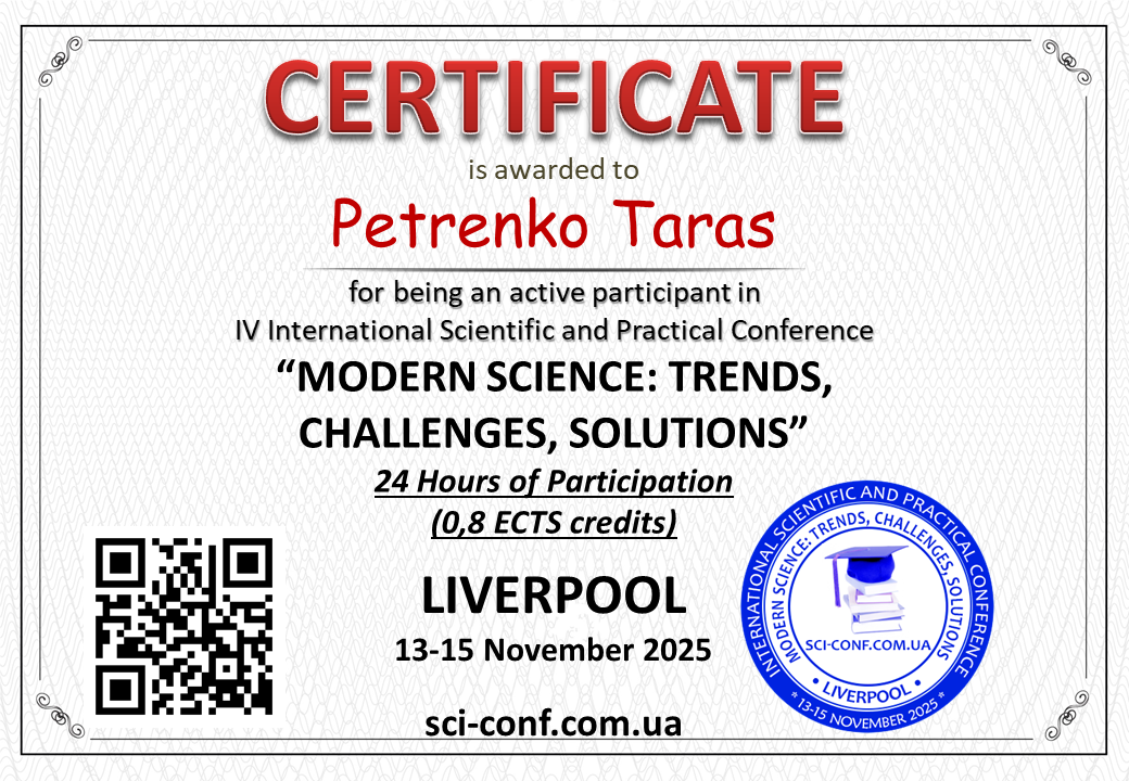 Статті учасників будуть опубліковані у збірнику із присвоєнням ISBN 978-92-9472-191-4 та УДК, вихідні дані м. Ліверпуль, Великобританія, випуск в електронному варіанті (Conference PROCEEDINGS) буде доступний на нашому сайті не пізніше 25.11.2025 року.