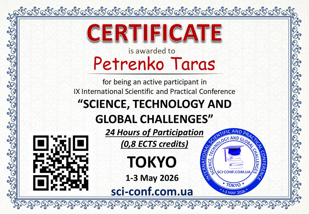 Статті учасників будуть опубліковані у збірнику із присвоєнням ISBN 978-4-9783419-7-6 та УДК, вихідні дані м. Токіо, Японія, випуск в електронному варіанті (Conference PROCEEDINGS) буде доступний на нашому сайті не пізніше 13.05.2026 року.