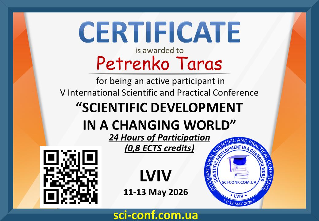 Відразу після оплати оргвнеску кожен учасник отримує сертифікат учасника конференції (24 години участі | 0,8 ECTS credits).