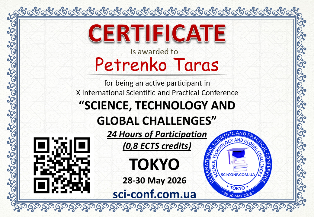 Статті учасників будуть опубліковані у збірнику із присвоєнням ISBN 978-4-9783419-7-6 та УДК, вихідні дані м. Токіо, Японія, випуск в електронному варіанті (Conference PROCEEDINGS) буде доступний на нашому сайті не пізніше 9.06.2026 року.